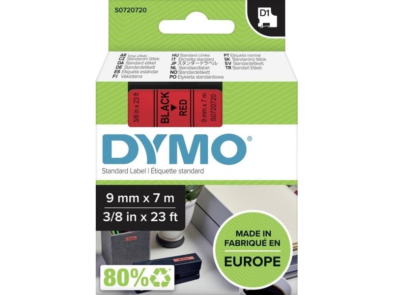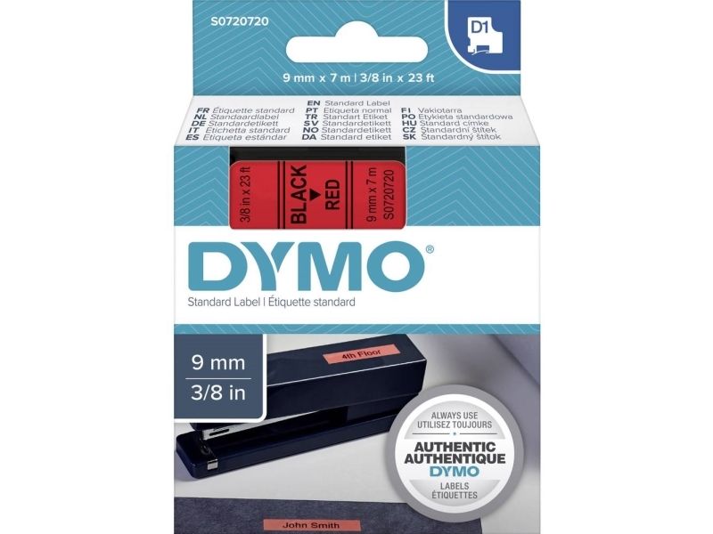 DYMO D1 - Blank - svart på röd - Rulle (0,9 cm x 7 m) 1 kassett(er) tejp - för LabelMANAGER