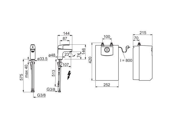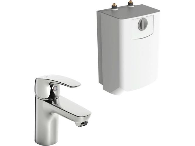 Washbasin faucet for summer house and water heater. Fixed spout and aerator. Maximum flow-rate 5 l/min. Due to the heating of water, water dripping from the aerator is a feature of this product and should not prevented. The aerator may not be changed or supplemented with additional components. Plug in, unpressurized water heater, 5 l. Easy to install. Range of use +35° – 85°C (recommendation + 65°C). In order to prevent frost damage, the faucet and the water heater must be emptied. This water heater is only allowed to operate with the original Oras summer house faucet. Warning! Water heater can heat the water up to +85°C. Beware of the instant scalding hot water from the faucet. The faucet and the water heater should not be installed separately.