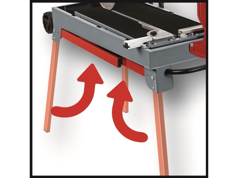 Extra lång skärlängd Robust hopfällbart stativ Transporthjul och -handtag Höjdjusterbar fot Dammuppsamlare med tvättbart filter Inbyggda magneter för att fånga upp fina metallpartiklar Stort arbetsbord med halksäkra gummiytor Vattenuppsamlare i stålplåt Justerbart vinkelanslag i aluminium Motorguide med 6 kullager Steglös vinkling av motorhuvud från 0-45° Inklusive diamantskiva Strömförsörjning: 230 V | 50 Hz Max. effekt (S2 | S2-tid): 900 W | 30 min Varvtal: 2 950 v/min Max. skärhöjd vid 45°: 25 mm Max. skärhöjd vid 90°: 30 mm Max. skärlängd: 62 cm Diamantskiva: Ø200×25,4 mm Skärskivans vinkling: 0-45° IP-klass: 54 Arbetsbordets storlek: 610×325 mm Skär till långa klinker och kakel lätt och exakt med den elektriska radialkakelskäraren på stativ med vattentank för rena kallsnitt. Det stora arbetsbordet med halksäkra gummiytor klarar kakel på upp till 62 cm i längd. 6029703
