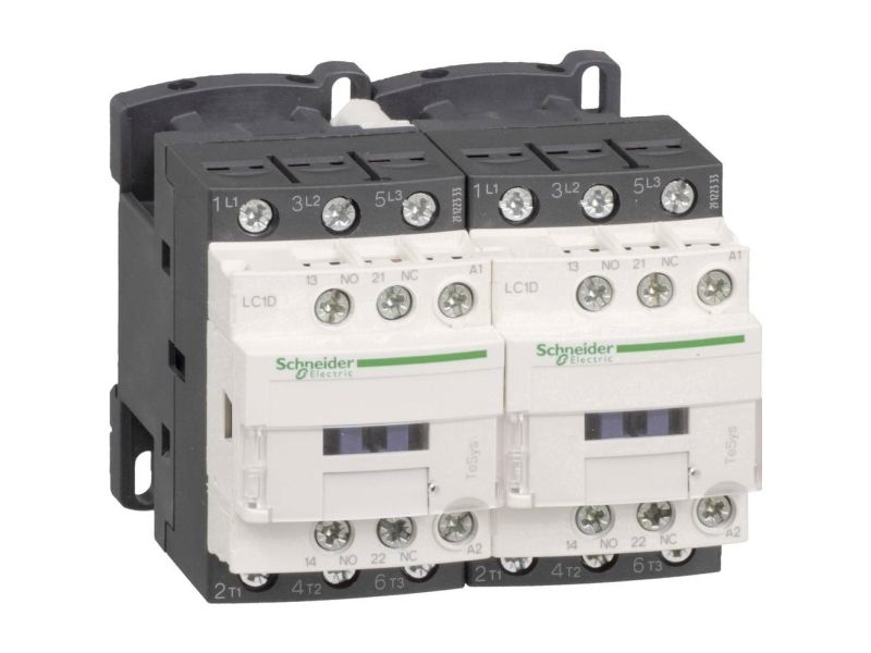 SCHNEIDER ELECTRIC kontaktor för reversering 4kW, 400V AC, 9A vid AC3, 2x3-pol, 2NO+2NC, styrspänning 24V DC