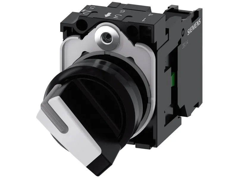 Selector switch, illuminable, 22 mm, round, plastic, white, selector switch, short, 2 switch positions O-I, latching, 10:30h/13:30h, with holder, 1 NO, screw terminal Selector switches SIRIUS ACT for switching and controlling electrical loads.