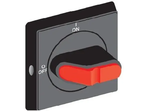 OHYS2RJ elektriskt handtag i-0/ON-OFF rödgult kräver ingen separat axel. Dörrmontering skruvmontering