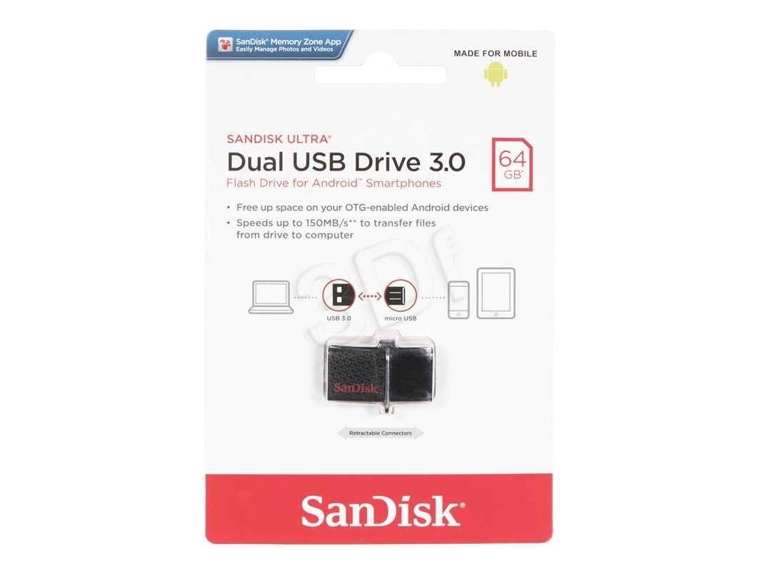 SanDisk Ultra Dual - USB-minne - 64 GB - USB 3.0 / micro USB
