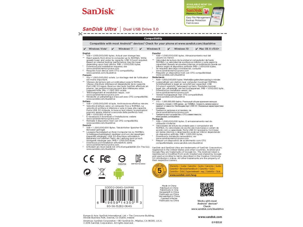 The SanDisk Ultra Dual USB Drive 3.0 is compatible and works instantly with PC and Mac computers running Windows Vista, Windows 7, Windows 8, and Mac OS 10.6+—no drivers required. It is backed by a five-year limited warranty**.