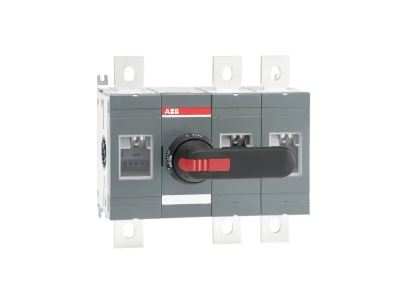 OT800E12P lastafbryder 3-polet 800A med m. Greb og akselDe manuelt aktiverede belastningsafbrydere i OT-serien er enestående med deres variationsmangfoldighed og fleksibilitet. OT-serien skifter strømstyrker fra 16 A til 4000 A og det ved spændinger på op til 1000 V AC. På trods af den høje ydelse er kontakten meget komfortabel at betjene og kræver kun lidt plads. Den vilkårligt valgbare monteringsposition giver en høj fleksibilitet og effektivitet i planlægningen. Desuden kan OT-kontakten anvendes som hovedafbryder i hoved- eller underfordeling. Naturligvis har OT-serien også IEC- og UL-godkendelser, der gør denne serie endnu mere attraktiv. Derudover tilbyder ABB et stort spektrum af tilbehør til disse kontakter, som for eksempel Forlængeraksler, greb, hjælpekontakter og klemmeafdækninger. Med disse kan OT-lastskilleafbryderen også anvendes til de mest krævende anvendelser.