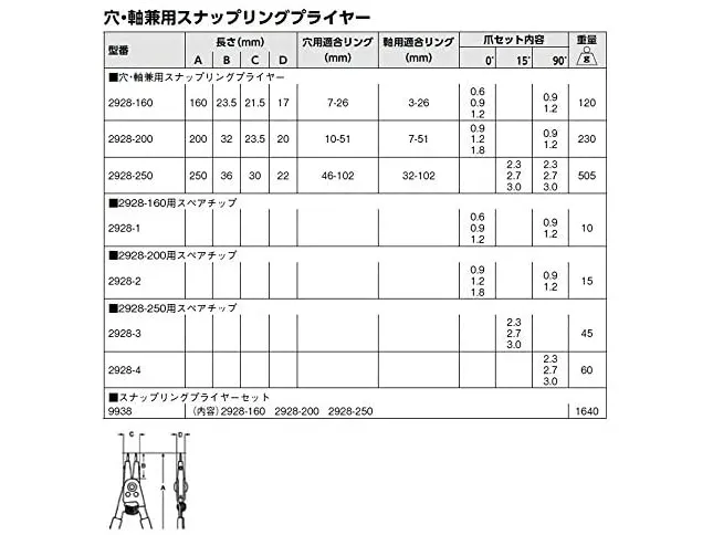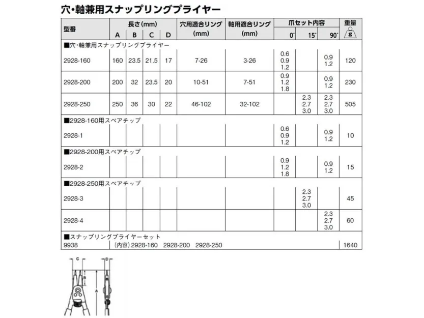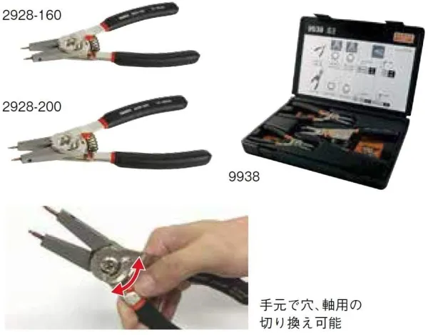Bahco låsringstång med utbytbara spetsar inre/yttre rak/böjd ut:10-51mm in:7-51mm