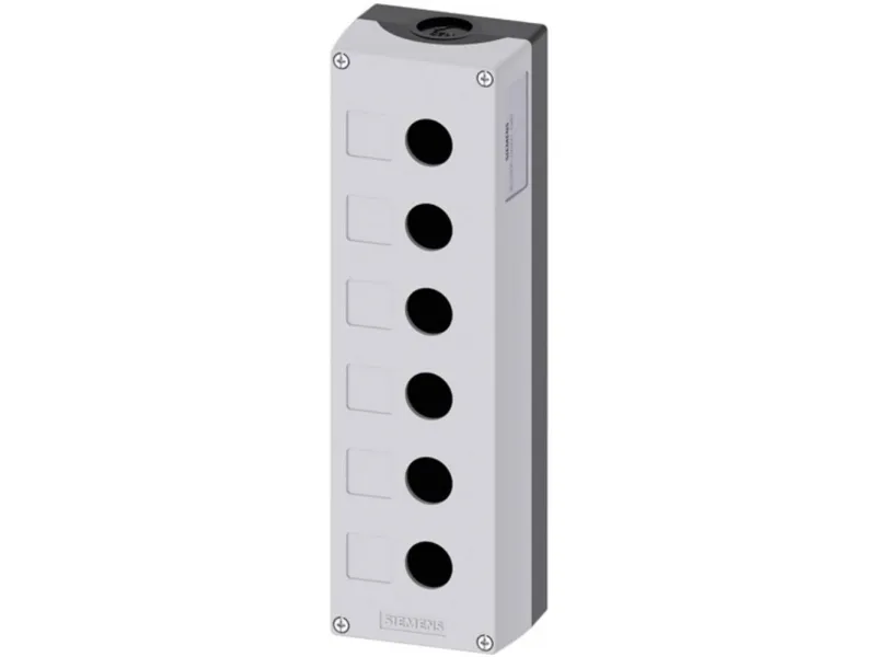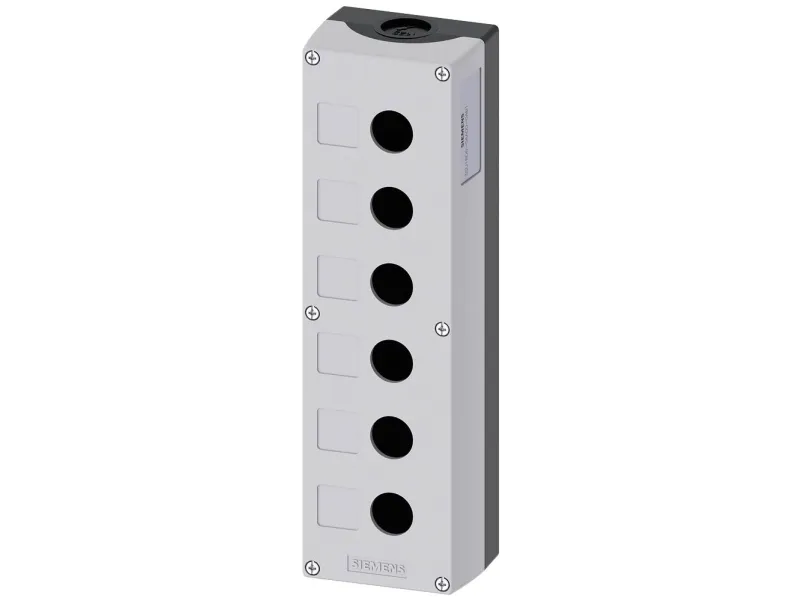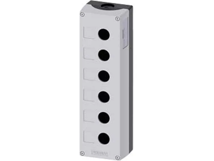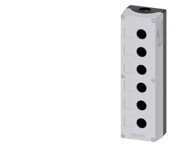 Enclosure for command devices, 22 mm, round, Enclosure material plastic, enclosure top part gray, 6 control points plastic, Recess for labels, without equipment.