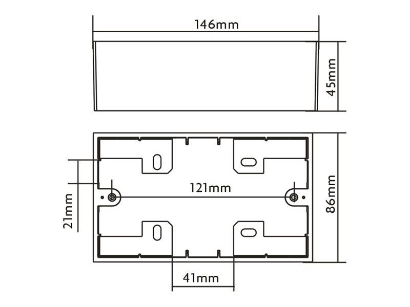 Aluminium 2-Gang Table-Mounted Backbox (surround not included) 150 x 106 x 73mm / 5.91? x 4.17? x 2.87? (width x depth x height)