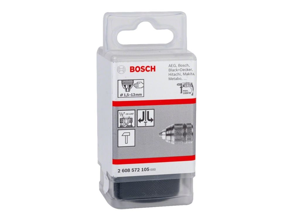 The Keyless Chuck clamps drill bits easily without a key. It is intended for use with cylindrical or hex shank drill bits from 1- to 13-mm diameter(s). The chuck is compatible with all common drills with 1/2-inch 20 UNF fitting.