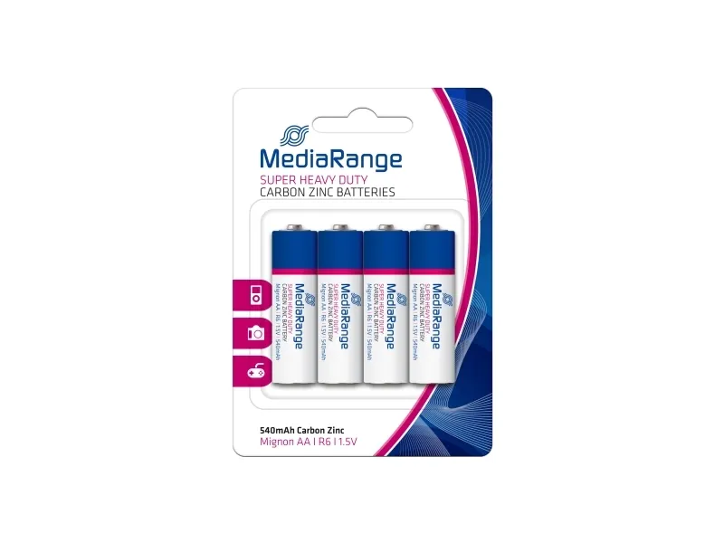 MediaRange super heavy duty (Carbon-Zinc) batteries are perfect for devices with low power consumption and continual use. The state-of-the-art technology provides maximum quality and supplies your devices with continuous power.