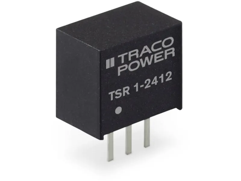 TSR-1 stegnedväxlingsregulatorer är avsedda att ersätta de ineffektiva 78xx linjära regulatorerna. Den extremt höga verkningsgraden på upp till 96 % gör det möjligt att arbeta vid full belastning upp till +60 °C omgivningstemperatur utan användning av kylflänsar eller tvångsluftkylning. TSR-1-regulatorerna uppfyller andra viktiga egenskaper hos linjära regulatorer: en hög utgångsnoggrannhet (±2 %), låg standby-ström på 2 mA och kräver inga externa kondensatorer. Den höga verkningsgraden och den låga standby-förbrukningen gör dessa switching-regulatorer till en idealisk lösning för ett stort antal batteridrivna tillämpningar