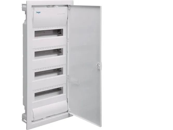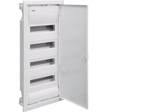 Hager Volta gruppetavle planforsænket med dør for komponenter op til 63A, kapslingsklasse II, IP30 - med dør IP40, farve RAL 9010