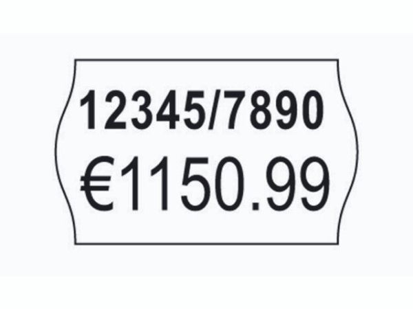 Etikettstorlek 26 x 16 mm. Prisetiketterna har den traditionella prislappens form och de har en säkerhetsperforering för att förhindra att etiketten manipuleras. På den övre raden på prisetiketten finns det plats för högst 8 alfanumeriska tecken och på den nedre raden finns det plats för högst 10 alfanumeriska tecken.