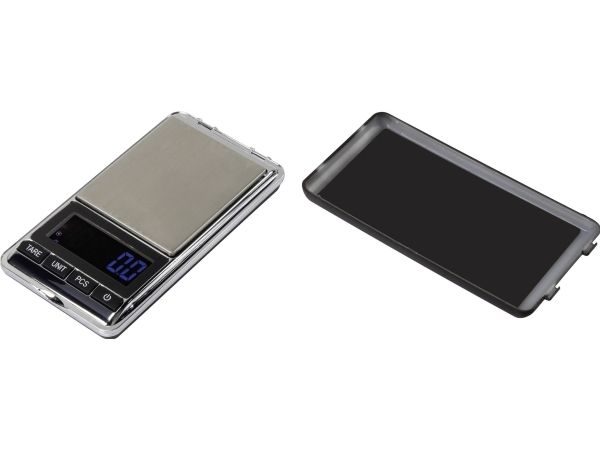 Fickvåg Basetech vägområde 500 g, avläsningsnoggrannhet 0,1 g, batteridriven, silver, kalibrerad fabrikstandard