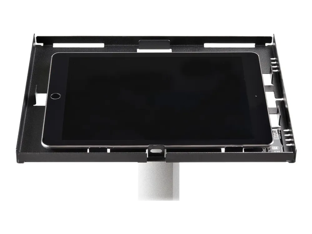 Med det här säkra stativet för surfplattor kan du använda surfplattan som en interaktiv marknadsföringspunkt eller en produktdisplay. Stöd för Apple iPad, iPad Air eller andra 9,7-tums surfplattor.
