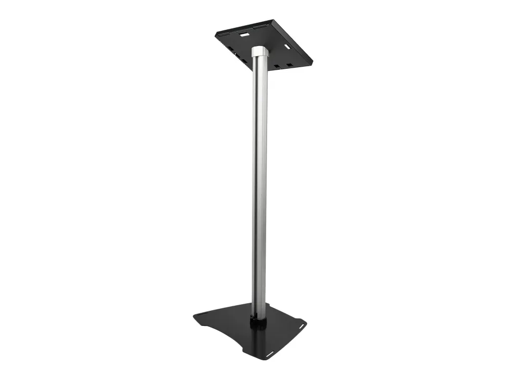 Skapa en imponerande visningsenhet för din surfplatta, för liggande eller stående visning.Stativet har en fast höjd på ca 1060 mm och inbyggd kabelhantering för en ren visning. Du kan strömförsörja surfplattan genom att dra laddningskabeln genom pelarstativet, så att den inte syns.