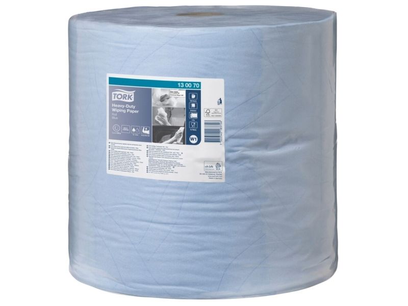 2-lags Tork Aftørringpapir Kraftig til alle formål er velegnet til lettere optørring og håndaftørring. Det kan bruges i Tork gulv- eller vægdispensere, som er designet med henblik på optimal sikkerhed, effektivitet og pålidelighed. Funktion til nem genopfyldning og let afrivning samt mulighed for at tage det papir, man skal bruge, med én hånd.