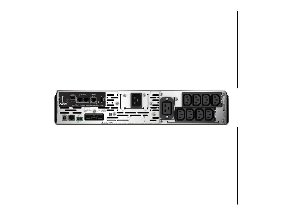 Cold-start capable\nProvides temporary battery power when the utility power is out.\n\nEnergy meter\nProvides actual kilowatt hours of usage for energy conscious users.\n\nGreen mode\nPatent-pending operating mode that bypasses unused electrical components in good power conditions to achieve very high operating efficiency without sacrificing any protection.\n\nHigh online efficiency\nReduces utlility costs, generates less heat.\n\nIntuitive LCD interface\nProvides clear and accurate information in multiple languages with the ability to configure the UPS locally with easy to use navigation keys.\n\nPredictive replace battery date\nDynamically provides the month and year when battery replacement is recommended to aide in long term maintenance planning.\n\nPreinstalled network management card\nProvides for remote management and control of the UPS over a network out of the box.\n\nSingle switched outlet group\nSingle outlet group that may be controlled separately from the UPS for discrete reboot of hung devices, sequenced on/off and non-critical load shedding.\n\nSmartSlot\nCustomize UPS capabilities with management cards.\n\nTemperature-compensated battery charging\nProlongs battery life by regulating the charge voltage according to battery temperature.\n\nAvailability\n\nDisconnected battery notification\nWarns when a battery is not available to provide backup power.\n\nAutomatic restart of loads after UPS shutdown\nAutomatically starts up the connected equipment upon the return of utility power.\n\nAutomatic self-test\nPeriodic battery self-test ensures early detection of a battery that needs to be replaced.\n\nIntelligent battery management\nMaximizes battery performance, life, and reliability through intelligent, precision charging.\n\nTemperature-compensated battery charging\nProlongs battery life by regulating the charge voltage according to battery temperature.\n\nBoost and Trim Automatic Voltage Regulation (AVR)\nGives higher application availability by correcting low and high voltage conditions without using the battery (not available on all models).\n\nPower conditioning\nProtects connected loads from surges, spikes, lightning, and other power disturbances.\n\nManageability\n\nNetwork manageable\nProvides remote power management of the UPS over the network.\n\nSerial connectivity\nProvides management of the UPS via a serial port.\n\nAudible alarms\nActively let you know if the unit is on battery, if the battery is low or if there is an overload condition.\n\nDisconnected battery notification\nWarns when a battery is not available to provide backup power.\n\nLED status indicators\nQuickly understand unit and power status with visual indicators.\n\nUSB connectivity\nProvides management of the UPS via a USB port (not available on all models).\n\nSafety\n\nSafety-agency approved\nEnsures the product has been tested and approved to work safely with the connected service provider equipment and within the specified environment.\n\nMarketing Features\n\nLow operating and maintenance costs with high efficiency, proven reliability and intelligent battery management\nPatented green operating mode achieves efficiencies over 97%. Smart-ups was the first network UPS to be Energy Star certified. Intelligent battery management, pioneered by APC, maximizes battery performance and life through intelligent, precision temperature compensated charging.\nDynamic battery replacement date indicator and automatic self tests insure battery reliability and warn in advance of needing replacement. Convenient, easy to connect, hot-swappable battery modules provide battery replacement without powering down. Designed and manufactured by APC for over 23 years, Smart-UPS is the world’s most trusted network UPS with over 25 million units sold.\n\nSave time with easy and convenient remote accessibility\nNetwork manageable via serial, USB or optional ethernet. Includes Powerchute® Business Edition Software for convenient monitoring and control, safe operating system shutdown and innovative energy management capabilities.\n\nSmarter productivity with ability to tailor to your specific application needs\nIntuitive LCD interface provides clear information with the ability to configure the UPS locally with easy to use navigation keys. Over 15 different programmable settings including switched outlet group control allow for application specific settings, thresholds and notifications.\n\nPeace of mind that comes with full equipment compatibility and reliability of a leader\nProvides pure sine wave output which is recommended by server manufacturers using active power factor corrected (PFC) power supplies. Safety agency tested and approved means that you can deploy Smart-UPS with confidence that they meet or exceed the industry’s most rigorous standards.\n\nAvoids costly power problems by keeping your IT equipment and data safe and available\nNetwork grade power conditioning protects from damaging surges and disruptive noise. Solid state automatic voltage regulation boosts low input voltage up to 30% and trims high voltage up to 12% without battery operation. Reliable battery back-up capacity to power through outages or gracefully shutdown systems\n\nServiceability\n\nResettable circuit breakers\nEnables a quick recovery from overload events.\n\nHot-swappable batteries\nEnsures clean, uninterrupted power to protected equipment while batteries are being replaced\n\nPredictive failure notification\nProvides early-warning fault analysis ensuring proactive component replacement.\n\nUser-replaceable batteries\nIncreases availability by allowing a trained user to perform upgrades and replacements of the batteries reducing Mean Time to Repair (MTTR)\n\nBattery failure notification\nProvides early-warning fault analysis on batteries enabling timely preventive maintenance\n\nAdaptability\n\nAdjustable voltage-transfer points\nMaximizes useful battery life by widening the input voltage window or tightening the output voltage reg