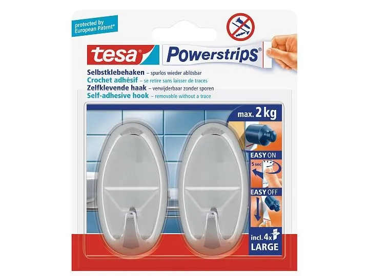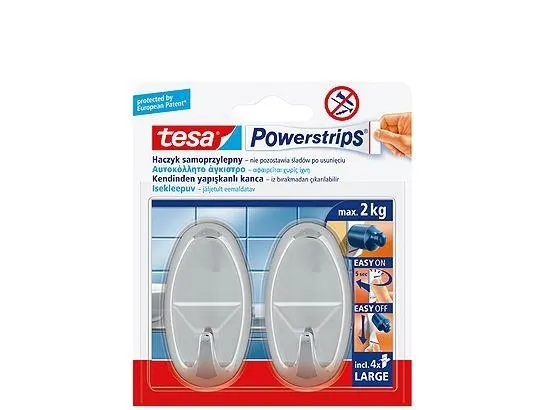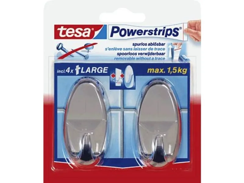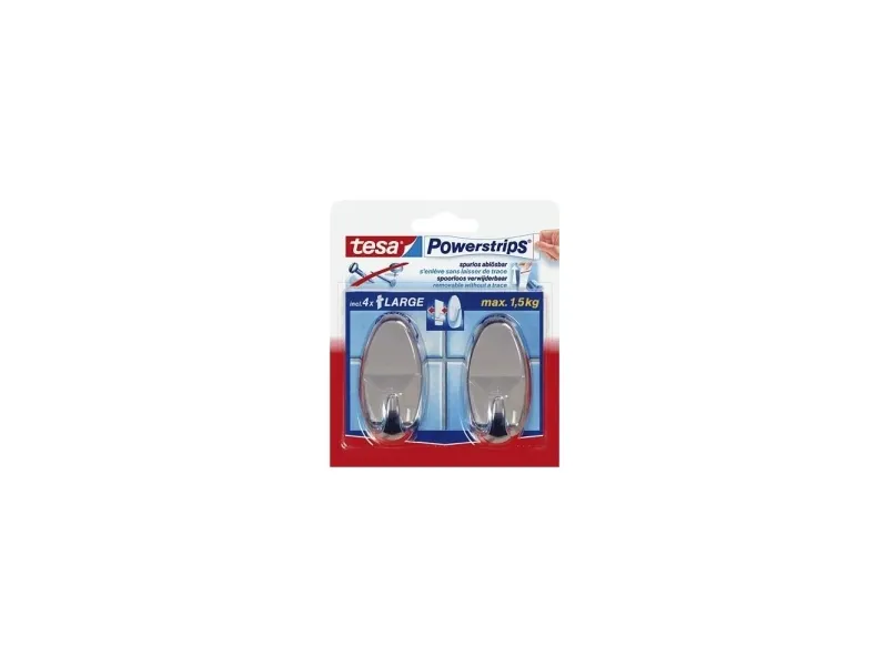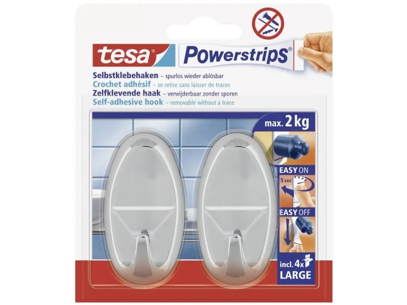 TESA 58050-00012, inomhus, Handdukskrok, Krom, Självhäftande remsa, 2 kg, Oval