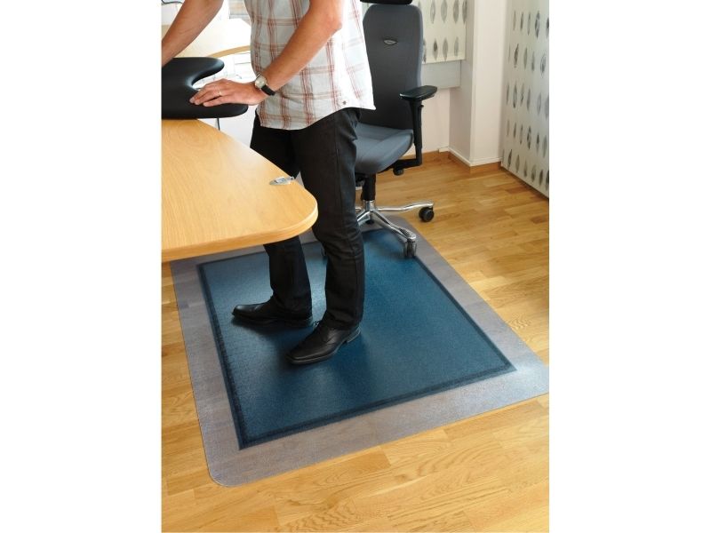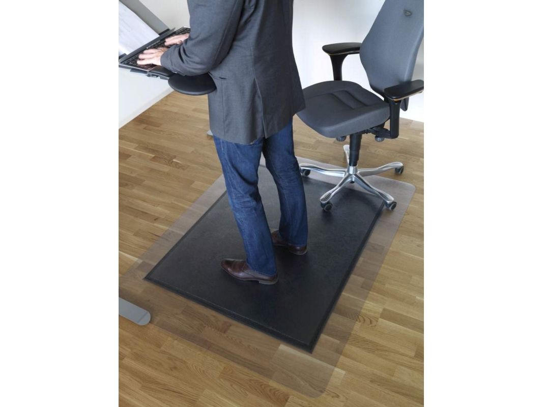 Ett höj- och sänkbart bord ger möjlighet att variera mellan stående och sittande arbete. En varierad arbetsställning skapar förutsättningar för att förebygga skador och besvär. När du sitter ner är det viktigt att kontorsstolens hjul kan rulla lätt och att golvet, eller mattan, skyddas från onödigt slitage. När du står upp, så är det viktigt med ett mjukt och spänstigt underlag för att avlasta knän, leder och muskler. Det motverkar trötta ryggar, fötter och ben. Stolsunderlägget Yoga Sitt och Stå kombinerar dessa egenskaper, då undersidan består av vårt bästa och spänstigaste material - Zedlan, här i svart utförande.
