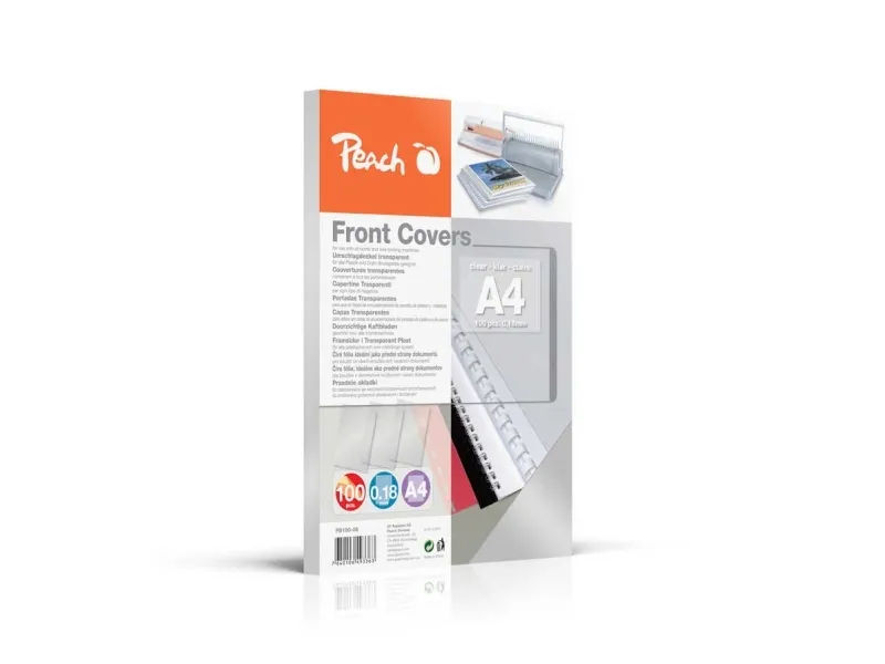 Peach PB100-06 - A4 (210 x 297 mm) - 100 ark - 180 mikron - transparent, färglös - främre pärmskydd