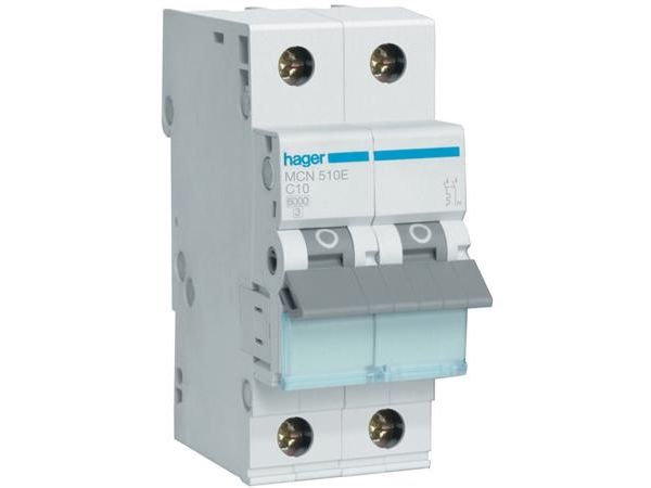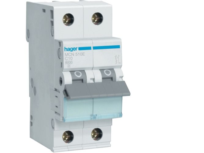 HAGER automatsäkring (MCB) 10A C-karaktär, 1-pol + nolla, 6 kA brytförmåga, 230V AC, 36 mm bred