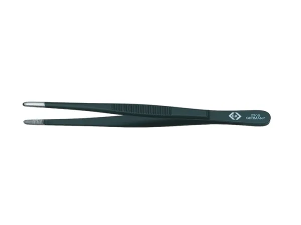 Tweezers - Universal 2308\nBlunt tips, 3.5mm wide, finely serrated inside.Matt black anti-glare finish.\n\nFor over 100 years, C.K has been at the forefront of hand tool manufacturing, producing high quality tools that meet the most demanding needs of trade professionals.\n\nC.K tools are engineered to offer leading performance, durability, accuracy and strength, all of which are key requirements for professional results.