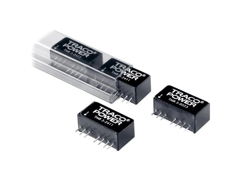 The TMR 3 series is a new family of isolated 3 W DC/DC converter modules with regulated output, featuring wide 2:1 input voltage ranges. The product comes in a compact SIP-8 plastic package with a small footprint occupying only 2.0 cm² (0.3 square inch) of board space. An excellent efficiency allows –40° to +85°C operation temperatures. Further features include remote On/Off control and continuous short circuit protection. The compact dimensions of these converters make them an ideal solution for many space critical applications in communication equipment, instrumentation and industrial electronics.
