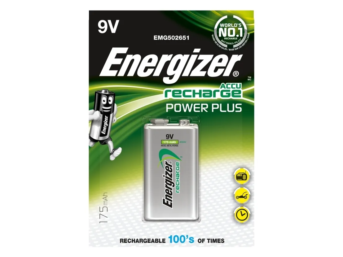 Batteri Energizer® Accu Recharge Power Plus, genopladelig, 9V
