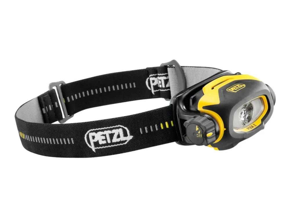 Headlamp suitable for proximity lighting and movement, with CONSTANT LIGHTING technology. 80 lumens max\n\nThe PIXA 2 is a rugged headlamp offering lighting that allows the user to work comfortably on tasks close at hand or to move around safely. CONSTANT LIGHTING technology: brightness does not decrease gradually as the batteries are drained. Depending on the need, it may be worn on the head, mounted on the helmet, or placed on the ground.\n\n- Headlamp keeps hands free for work and can be worn:\n- on the head with the headband.\n- attached to the helmet with a mounting plate (included).\n- placed on the ground.\n- CONSTANT LIGHTING technology ensures brightness that does not gradually decrease as the battery drains.\n- Several lighting modes adapt to each situation:\n- low mode adapted for close-range work: mixed beam with a wide, uniform flood.\n- high mode adapted for movement: mixed beam with focused component allows user to move around comfortably.\n- Lighting for professionals that is reliable, practical and durable:\n- automatically switches to reserve mode when batteries are almost drained (signaled by blinking light).\n- knob is easy to use, even with gloves on.\n- storage position helps protect the headlamp lens and prevents inadvertently turning it on.\n- may be used in explosive atmospheres (ATEX: Zone 2/22).\n- excellent resistance to falls (2 m), impacts, and crushing (80 kg).\n- comfortable and washable elastic headband.\n- resistant to chemicals.