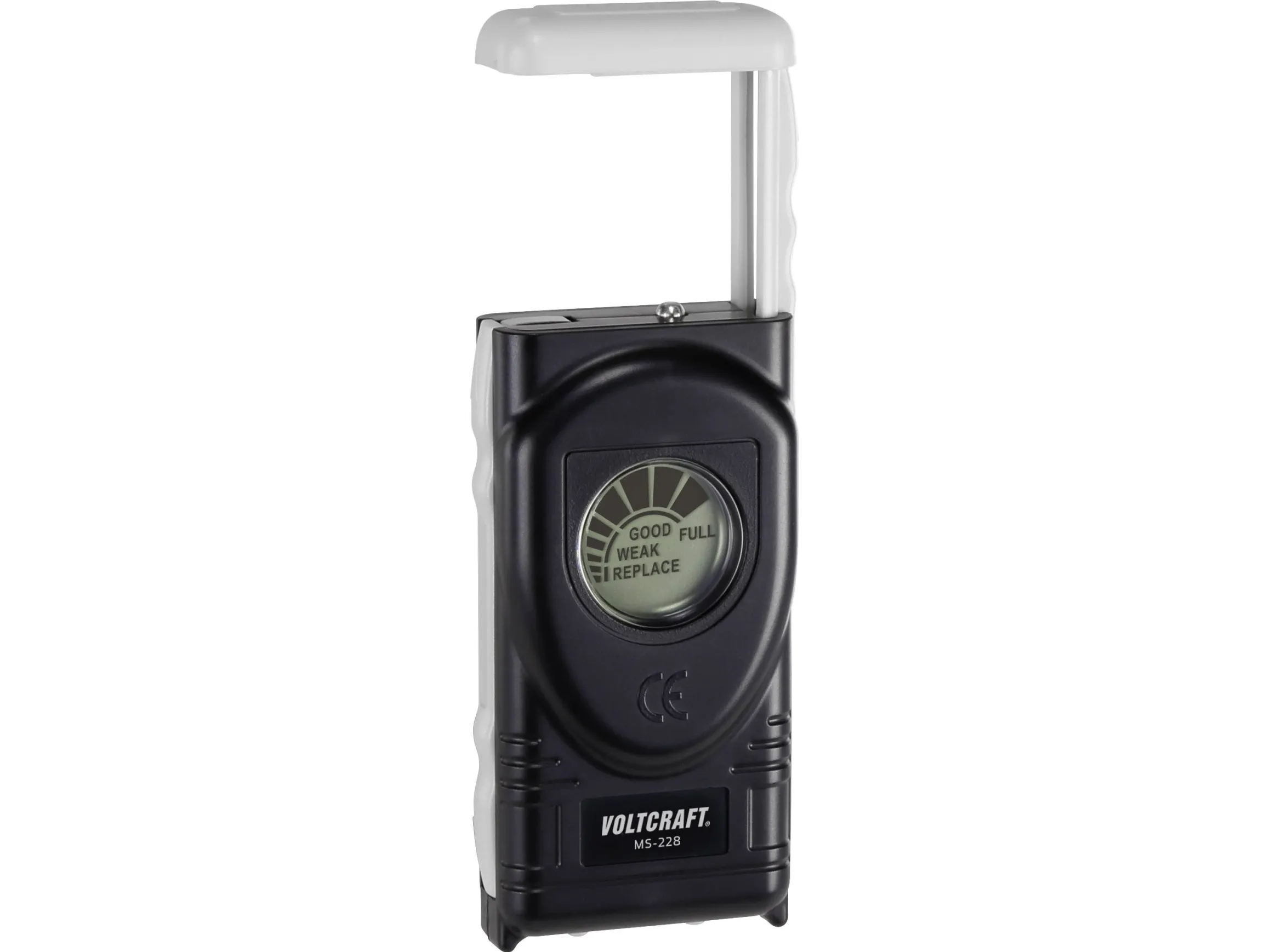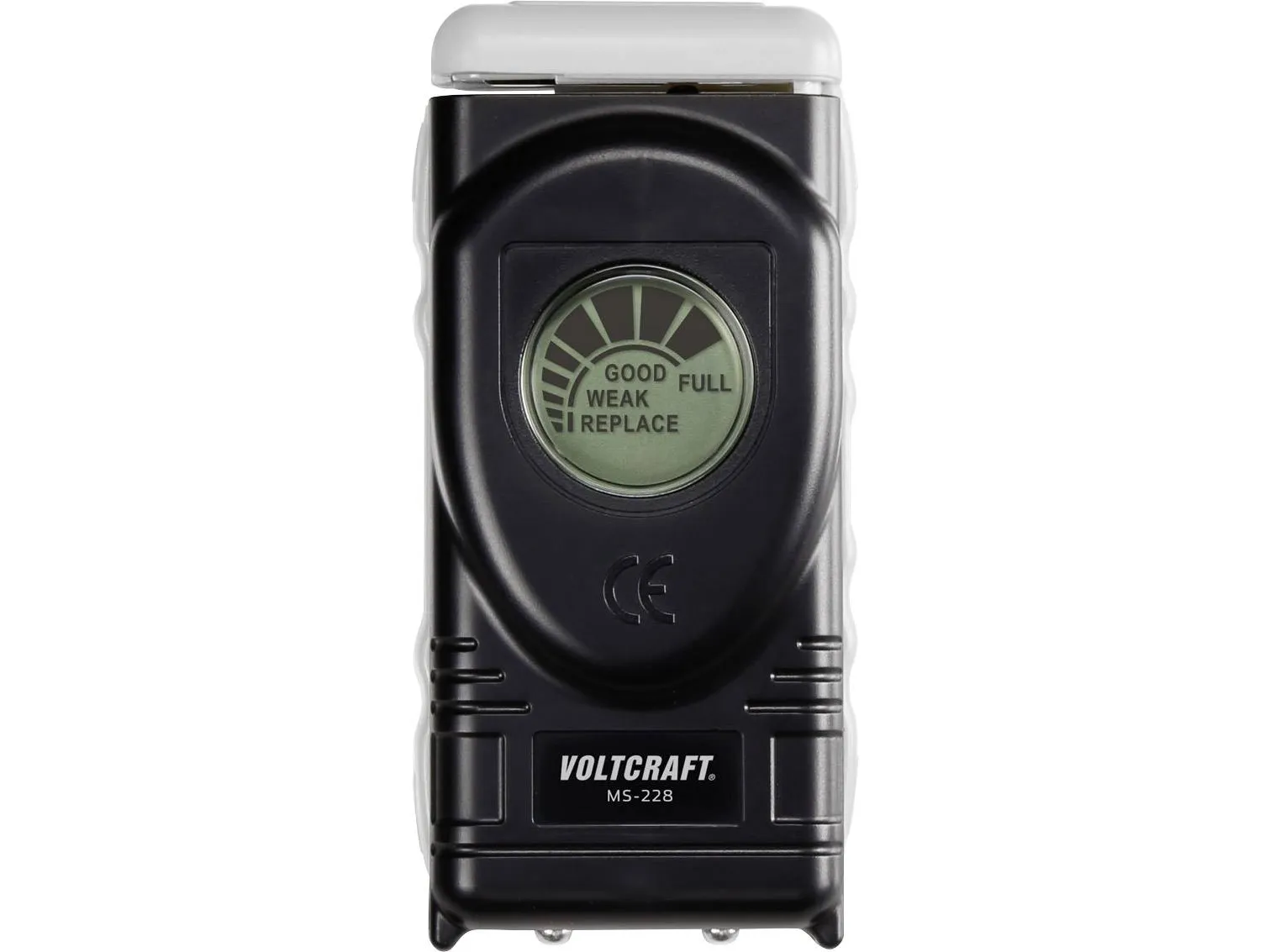Kontrollerar alla vanliga batterier och 9V-blockbatterier på enklaste sätt.
