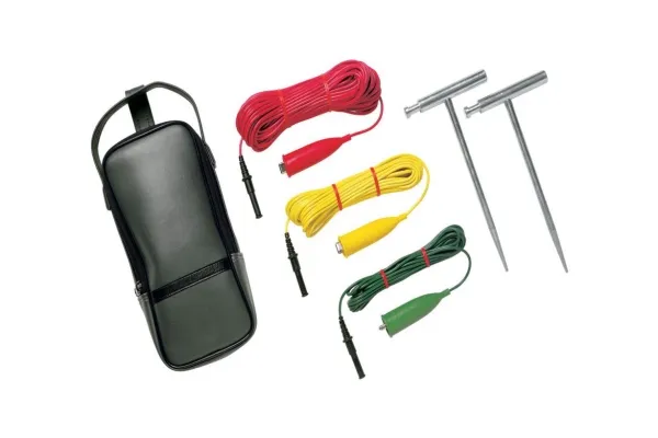 Setet tillåter enkel jordresistanstest med hjälp av tresladdsanslutningsmetoden och hjälpjordspett.