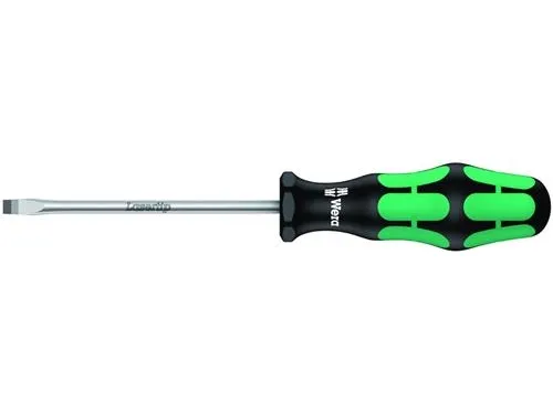 High quality Kraftform Plus screwdrivers. Multi-component Kraftform Plus handle for pleasant, ergonomic working that makes blisters and calluses a thing of the past. Hard gripping zones for high working speeds whereas soft zones ensure high torque transfer. The tips of the Wera Lasertip screwdrivers are microscopically roughened by laser beams. This rough surface literally bites into the head of the screw. Any unintentional slipping out is therefore prevented. "Take it easy" tool finder with colour coding according to profiles and size stamp – for simple and rapid accessing of the required tool. The hexagonal anti-roll feature prevents any bothersome rolling away at the workplace.