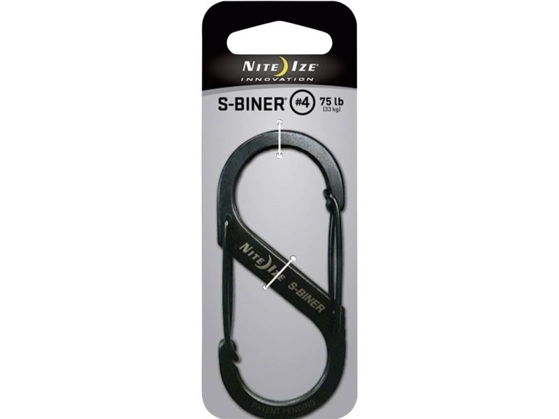 S-Biner ser till att du inte förlorar något. De två öppningarna tillåter ett oändligt antal applikationer. Hög draghållfasthet garanterar integritet även under höga belastningar. Idealisk för objekt på ryggsäcken, för bältesinfästning tält etc. och snabbt ta bort det igen.
