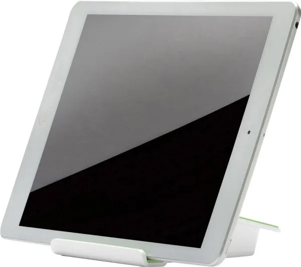 UP Tablet Stand - läs, skriv, presentera på bästa sätt! Den digitala stödarbetsplatsen för alla populära surfplattor eller smartphones till ett djup av 10 mm. Oavsett om det är stående eller liggande läge, ger det ergonomiska bordsstället alltid den bästa arbets- och betraktningsvinkeln. Med säkert stopp med hjälp av mjuk greppyta och smartare laddkabelfäste.
