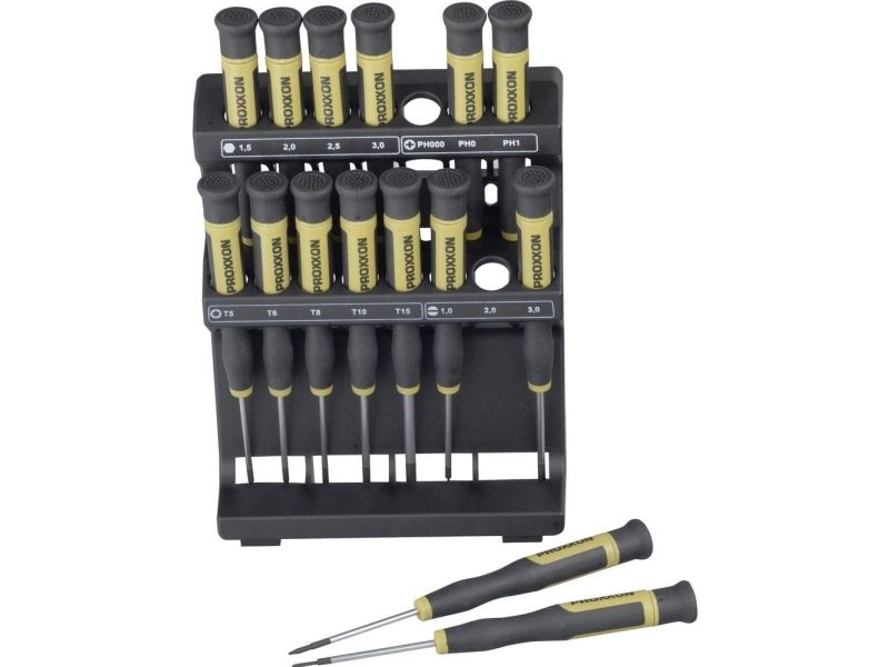 Proxxon Micromot MICRO Elektronik och finmekanik Skruvmejselsats 15 delar Nyckel, Phillipsskruvmejsel, sexkantig hylsa (TX), Unbrako