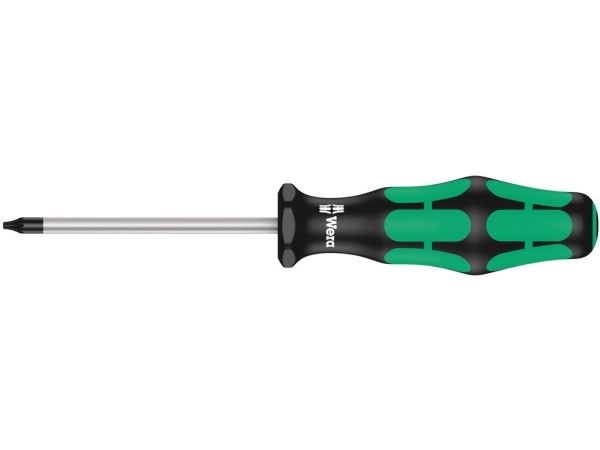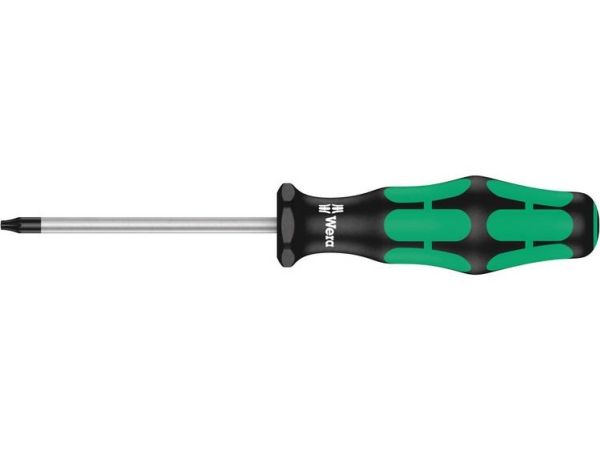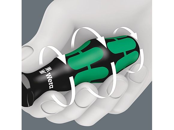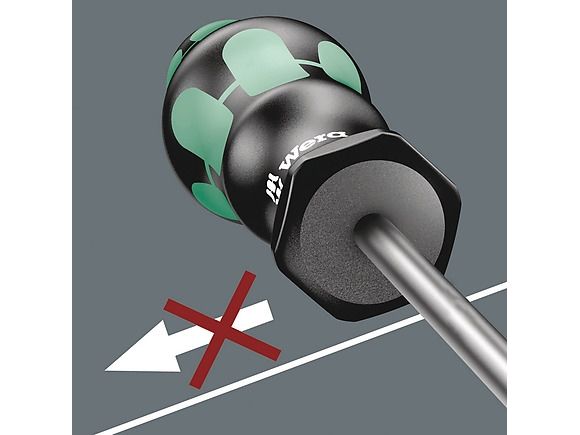 High quality Kraftform Plus screwdriver. Multi-component Kraftform handle for fast and low-fatigue working. Kraftform Plus: hard gripping zones for high working speeds whereas soft zones ensure high torque transfer. The Wera Black Point tip and a complex hardening process ensure a long service life of the tip, enhanced corrosion protection and an exact fit. "Take it easy" Tool Finder: colour coding according to profile and size. The hexagonal anti-roll feature prevents any bothersome rolling away at the workplace.