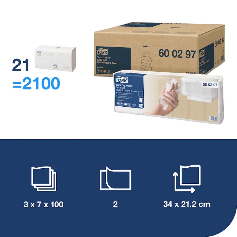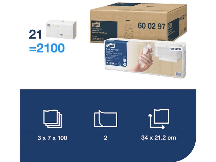 TORK 600297 Xpress Multifold Premium pappersservetter (L x B) 34 x 21,2 cm vit 2100 st