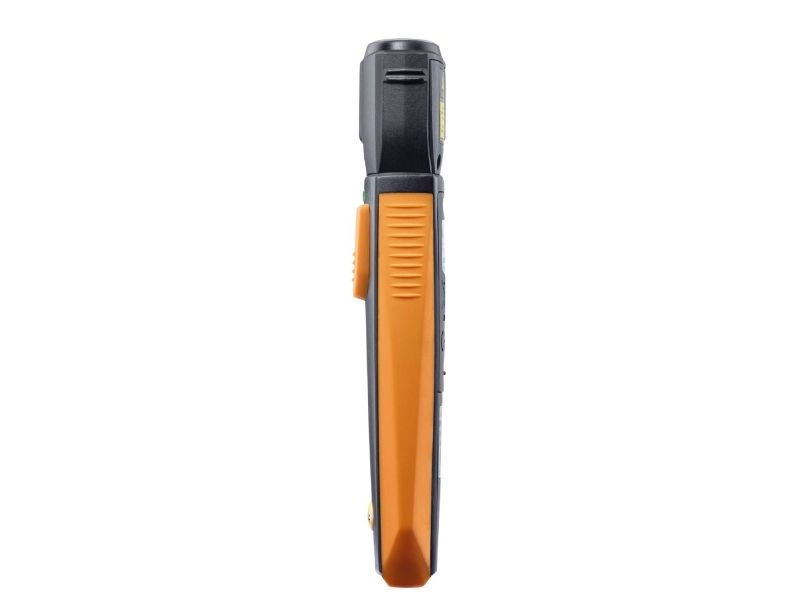 The testo 805i Smart Probe is an infrared (IR) thermometer that provides non-contact temperature readings, great for checking breakers, motors, ducts, and registers from a distance. The measurement area is indicated by a circular laser pattern, which asssures accurate targeting measurement.