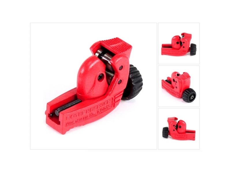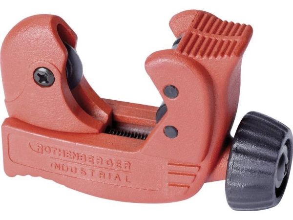 För koppar-, mässing-, aluminium- och tunna stålrör med en yttre diameter på 3 - 28 mm (1/8″-11/8″). Praktisk design med mycket liten arbetsradie. Enkel tryckjustering med hjälp av det stora fingervredet. Två stödrullar med insats för snitt nära kanten.
