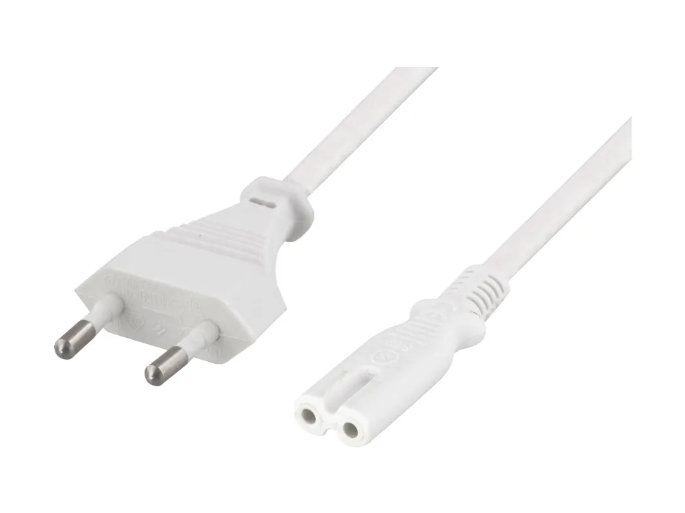 DELTACO DEL-109JM - Strömkabel - Europlug (hane) rak till ström IEC 60320 C7 rak - AC 250 V - 2,5 A - 3 m - vit
