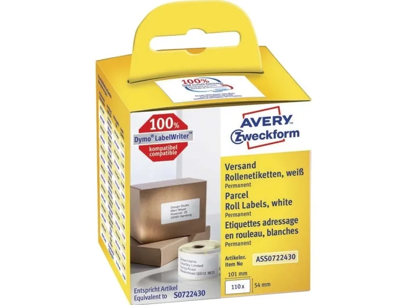 Er du løbet tør for etiketter til din Dymo® Labelwriter™ eller Seiko Smart Label Printer®? Avery's ASS0722430 forsendelsesetiket på rulle til etiketprintere svarer til Dymo® S0722430 og Seiko® SLP-SRL. Rullen er 100% kompatibel med Dymo® Labelwriter™ LW310, LW330T, LW400 Serie, LW450 Serie, 4XL, LW Wireless og Seiko Smart Label Printer®!
