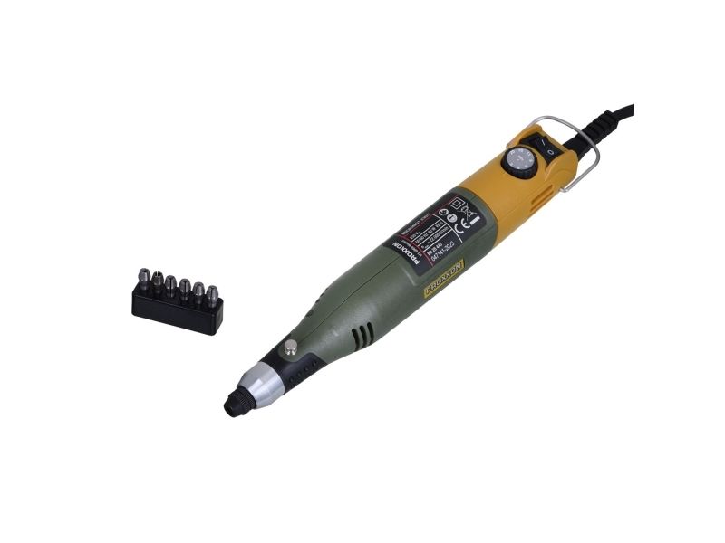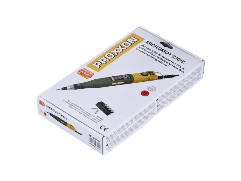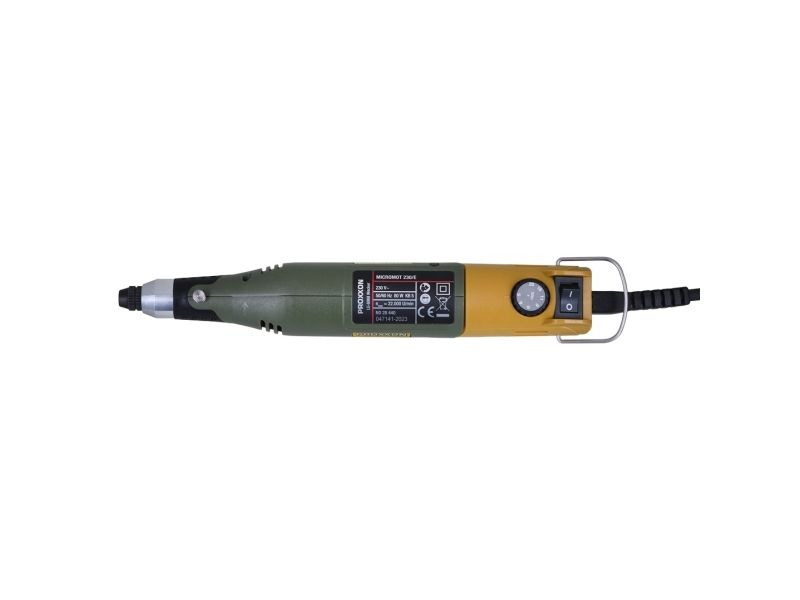 Balanced, low noise special DC motor with high life expectancy. The maximum speed of 21,500rpm can be continuously reduced to 6,500rpm through full-wave electronics. Offering nearly the same torque also in the lower speed range. This is especially important for micro drilling, brushing and polishing. Ground, ball-bearing spindle. High quality MICROMOT steel collets: Even the smallest shafts are accurately clamped. No rattling or vibrating of bits and cutters.