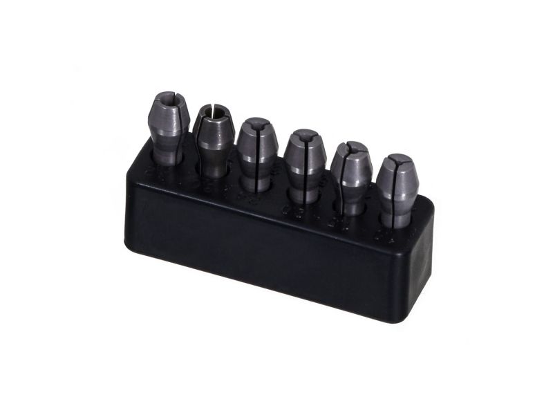 Spindle for tool exchange can be locked at the push of a button. 20mm collar for use in MICROMOT drill stands and horizontal stands. Includes MICROMOT steel collets (1 each of 1.0 - 1.5 - 2.0 - 2.4 - 3.0 and 3.2mm).