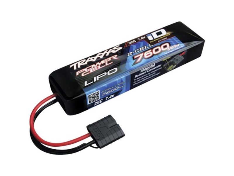 Traxxas iD Power Cell LiPo batteries offer the ultimate in power, "punch," and runtime with the highest possible capacity and voltage. 7600mAh 2-Cell LiPos provide 50% more runtime than 5000mAh, giving you more time for fast laps, jumps, and over-the-top RC fun.