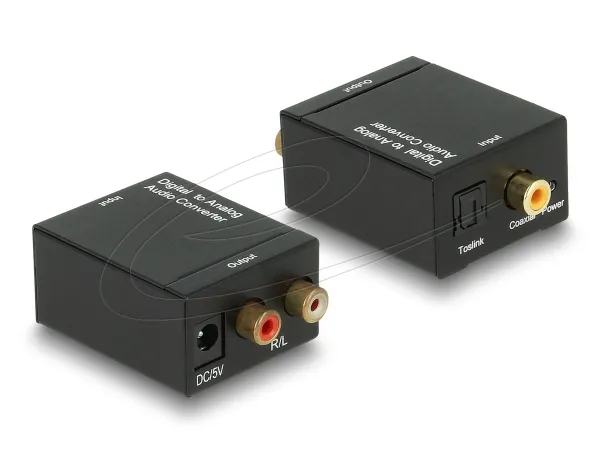 The Delock audio converter changes your digital signal into an analog stereo signal. At the input port of the device you can connect e.g. your digital DVD or Blu-ray player to input the digital signal whether optical via Toslink or via coaxial connection. At the output port the analog signal will be transmitted through the RCA connection to the analog device.