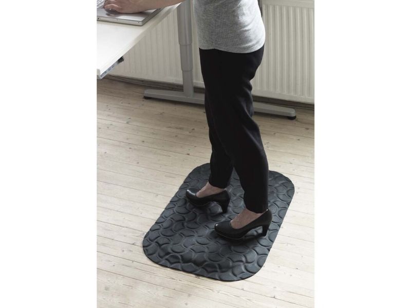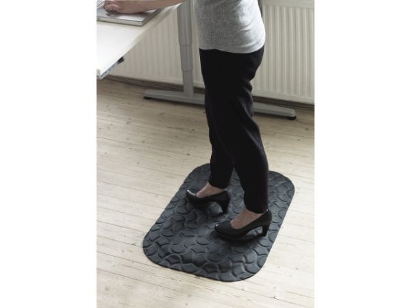 Du behöver inte välja mellan att ha joggingskor eller att få ont i fötterna när du står upp och arbetar! StandUp! är en smart, ergonomisk arbetsmatta som fördelar belastningen på fötterna. Ta en bra vana på jobbet. Flytta stolen, gör plats för StandUp' - använd ditt ståbord och må bättre. StandUp Air har en extra tjock och mjuk konstruktion som ger ännu bättre belastningsergonomi när du arbetar stående. Mattan är både dämpande och avlastande. Den snygga ytan är tillverkad av nitrilgummi, vilket gör mattan extra slitstark och lätt att hålla ren. StandUp Air passar både i kontorsmiljöer, i receptionsutrymmen och i butiker.