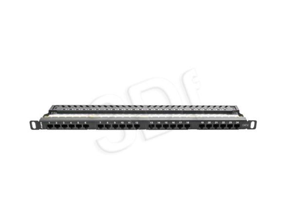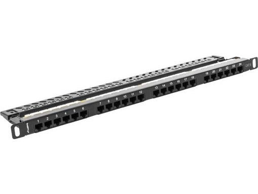 It is a passive part of structured cabling used for termination and organization of twisted-pair cables within 19" rack cabinets. Patch panels is equipped with 24 unshielded RJ-45 ports category 6.