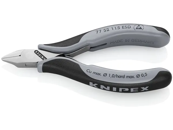 Knipex KP-7752115ESD, Avbitartång, 1,1 cm, 1,4 cm, 7 mm, 1 mm, Elektrostatiskt urladdningsskydd (ESD)