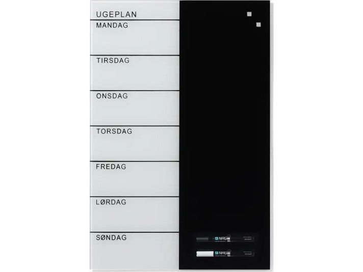 Magnetisk NAGA glastavle ugeplanner 40x60 cm - dansk tekst